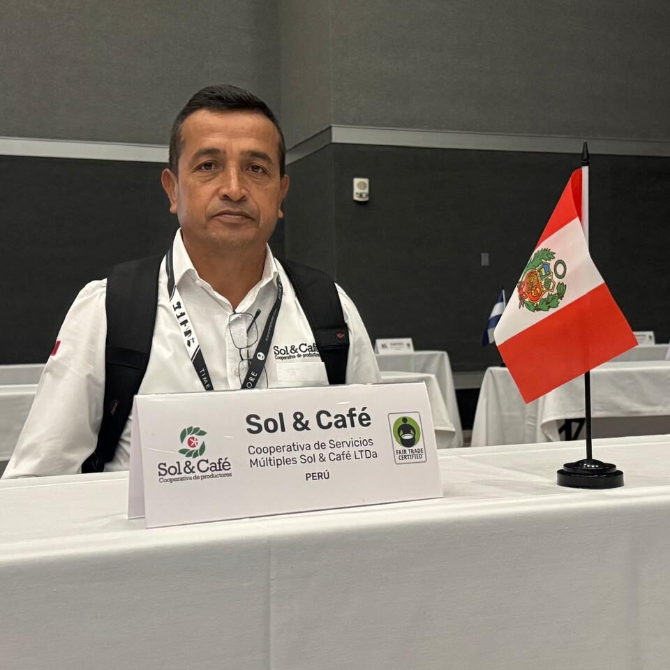 Destacar a nuestro socio Juan Pablo Villegas, socio fundador de la Cooperativa Sol&Café desde el año 2008, quien es esta oportunidad es imagen de #FAIRTRADE en la #sca2025expo Juan Pablo pertenece a la base social San Miguel de Las Naranjas distrito y provincia de Jaén; ha representado a las más de 900 familias socias productoras de café, cacao y arroz ubicados en las provincias de Jaén, San Ignacio y Cutervo de la región Cajamarca.