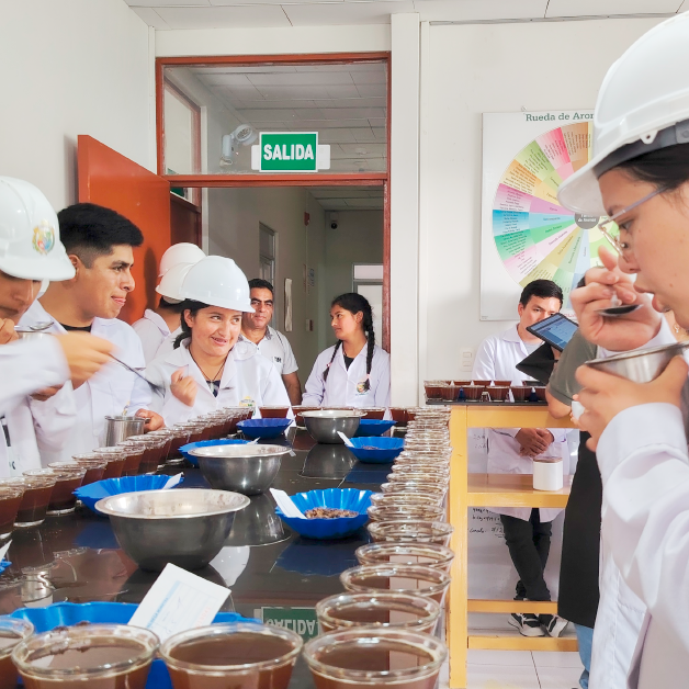 Los días 24 y 25 de julio recibimos visita técnica de 21 estudiantes del VII CICLO de la carrera de Ingeniería Agroindustrial de la Universidad Nacional Autónoma de Chota con quienes compartimos experiencias productivas en la industria del café, cacao y cereales.