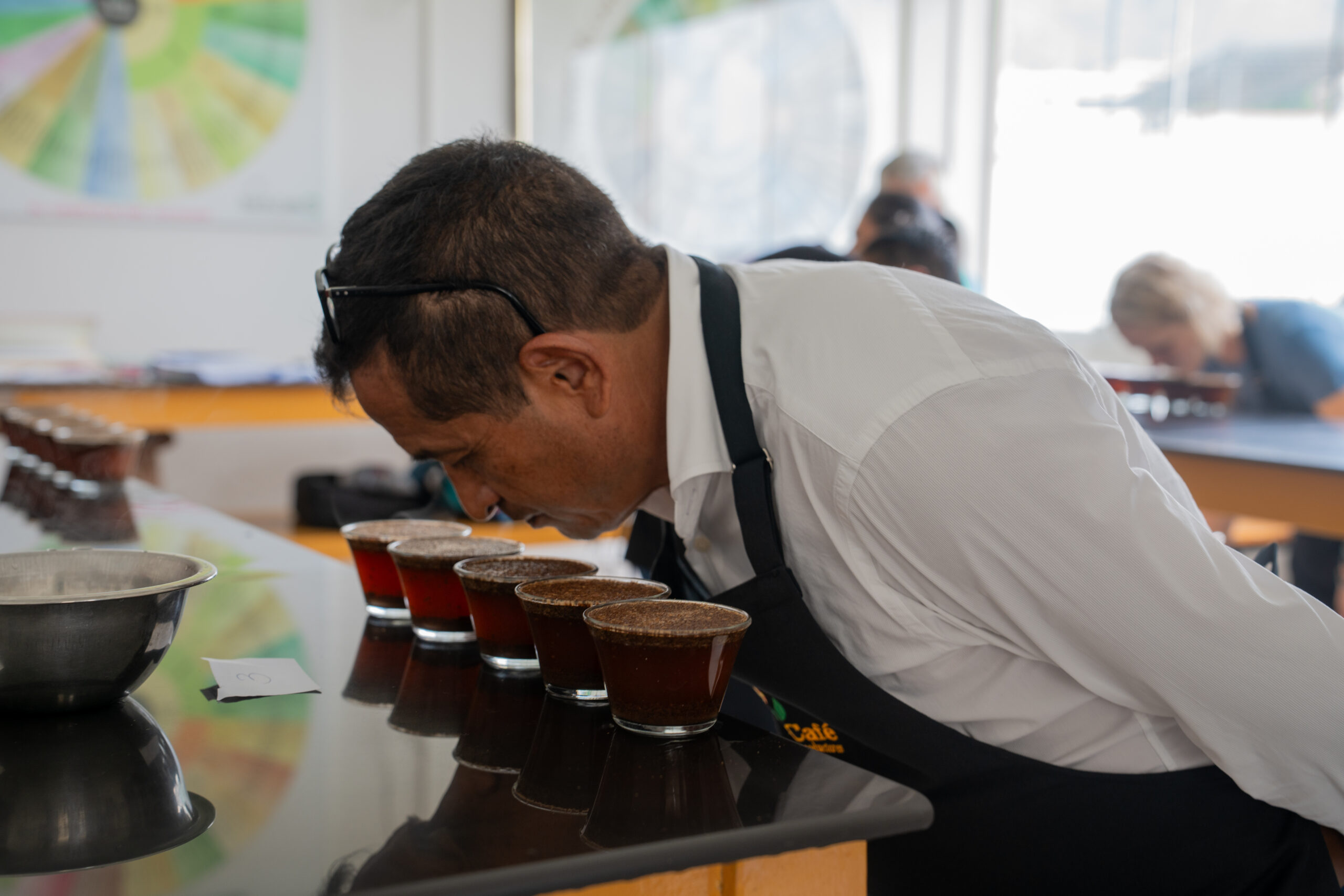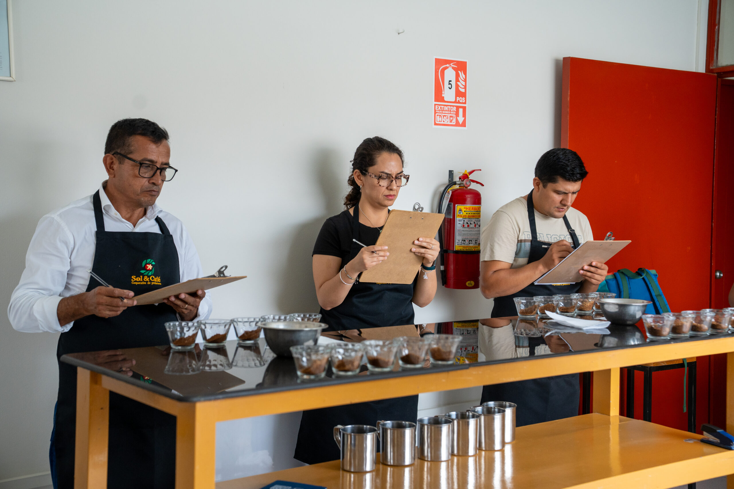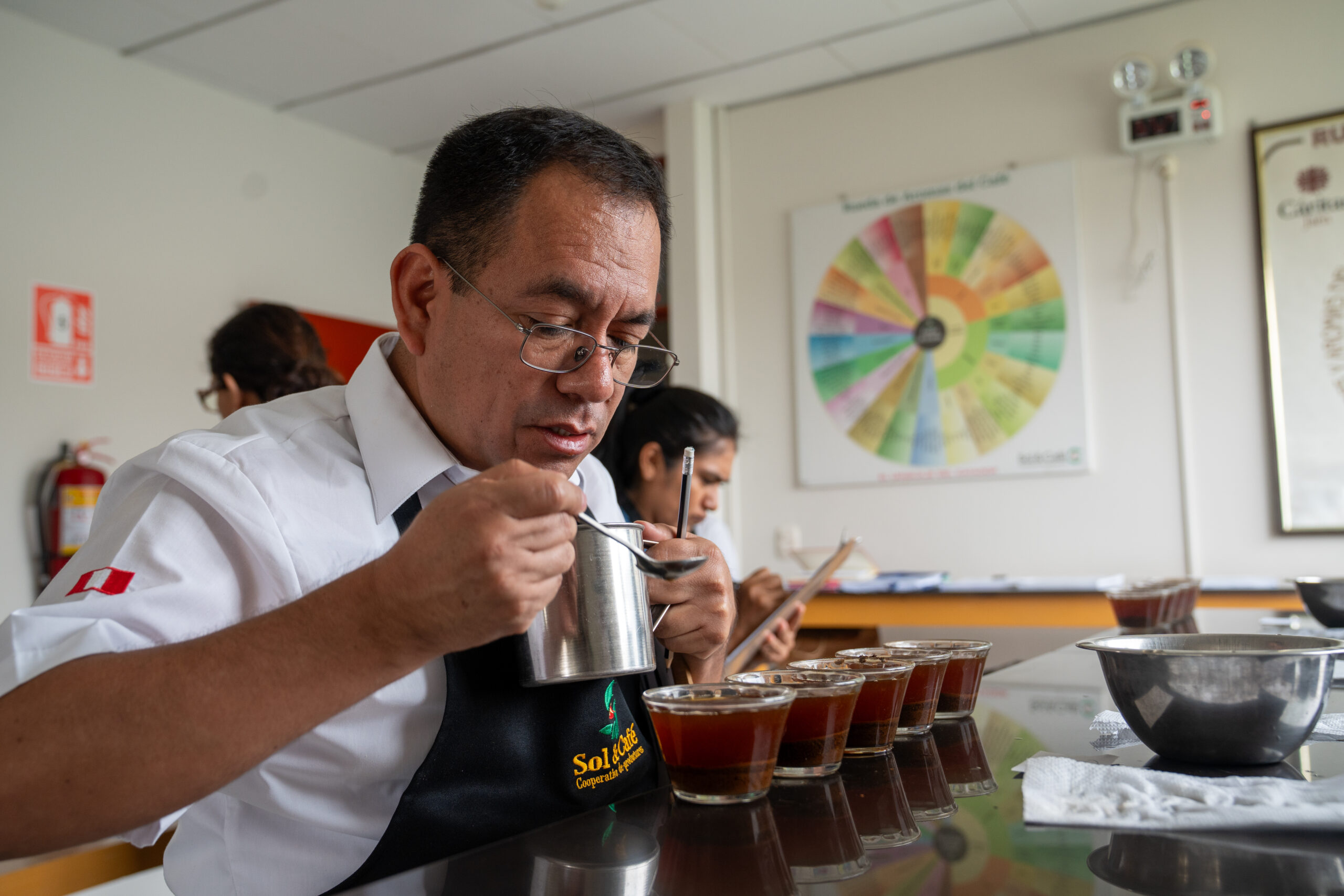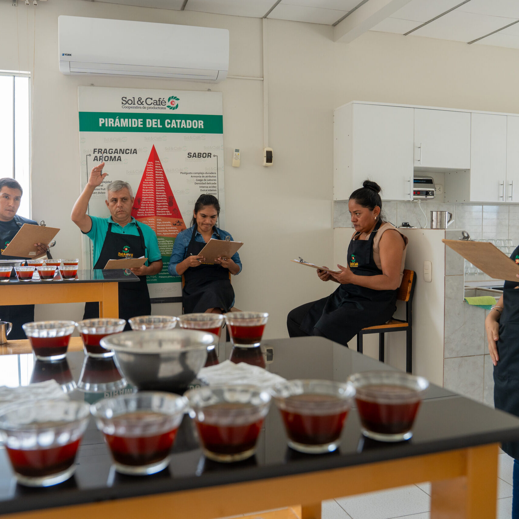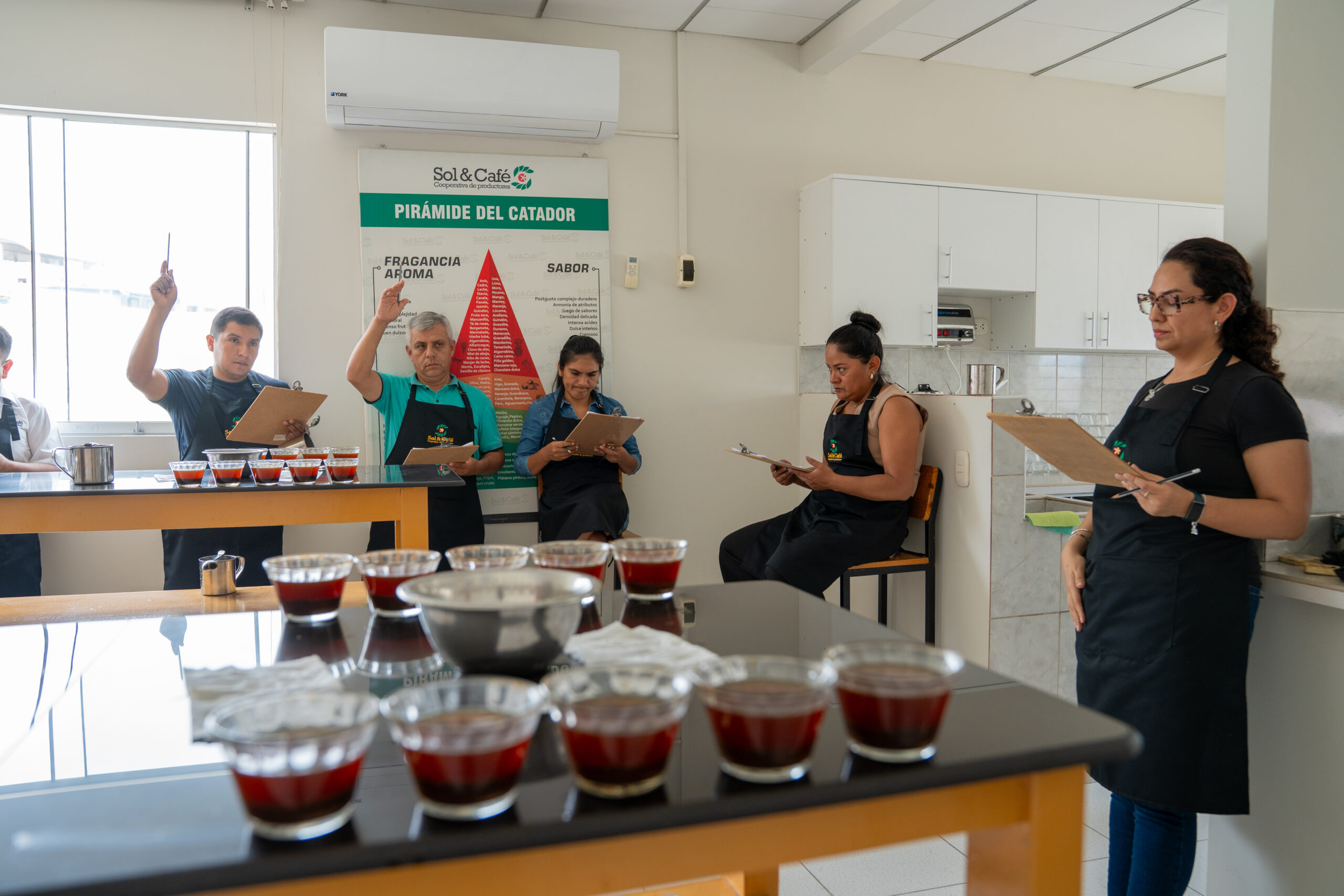 Beth Ann Caspersen Gerente de Control de Calidad de Café de nuestro aliado estratégico EQUAL EXCHANGE – EE.UU, brindó una capacitación teórica – práctica al equipo de catadores de Sol&Café en el nuevo Sistema para la evaluación de Valor de Café (CVA).