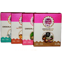 Tableta de chocolate con 60% de cacao, producido en las parcelas de nuestros socios cacaoteros, elaborado en diferentes presentaciones con aditivos como maní, frutos secos, frutas deshidratadas y chocolate bitter.