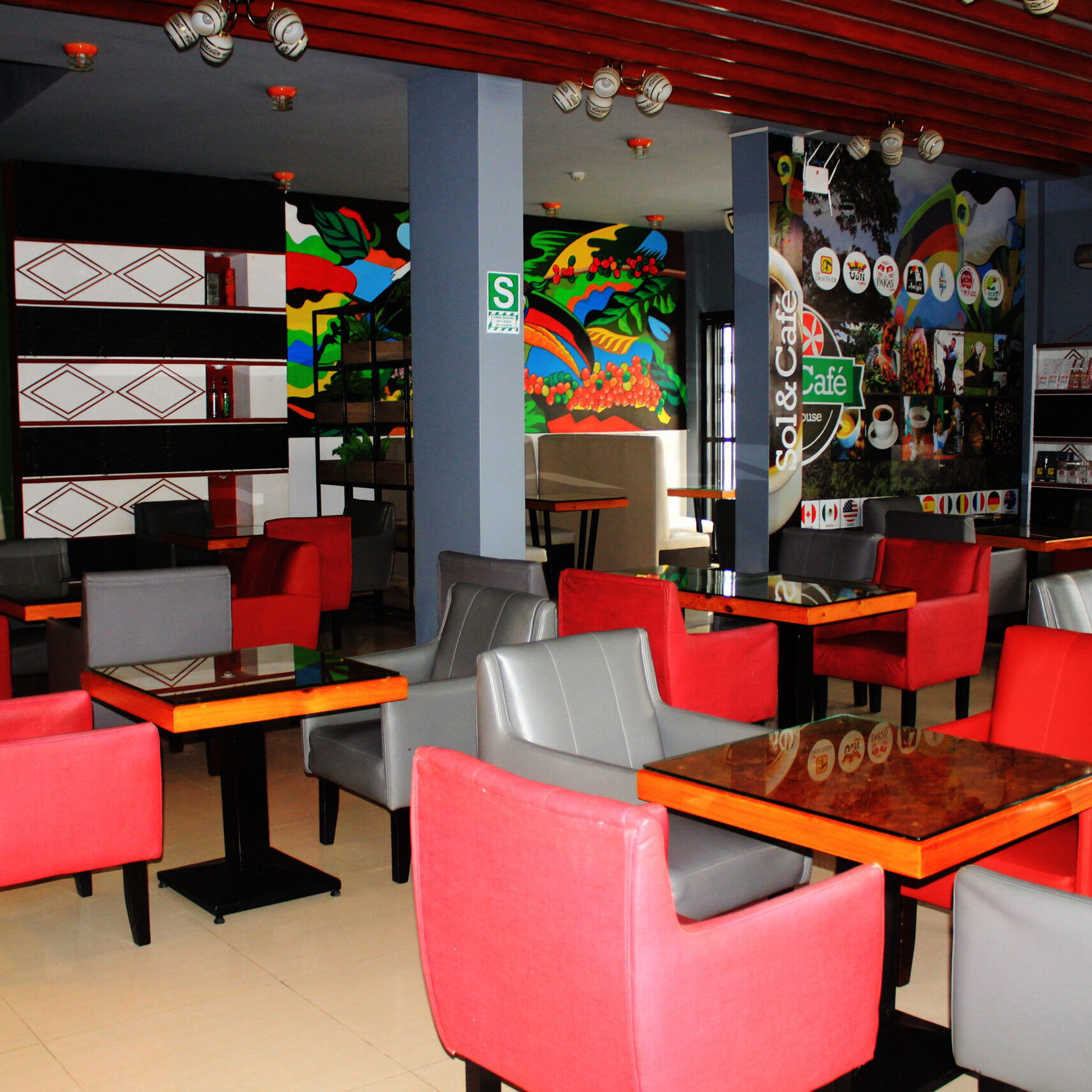 La cafetería Sol&Café CoffeeHouse es una cafetería creada el 07 de junio del 2019 que promueve realzar la calidad del café y cacao de los socios productores de la Cooperativa Sol & Café distribuidos en las provincias de Jaén y San Ignacio, región Cajamarca.